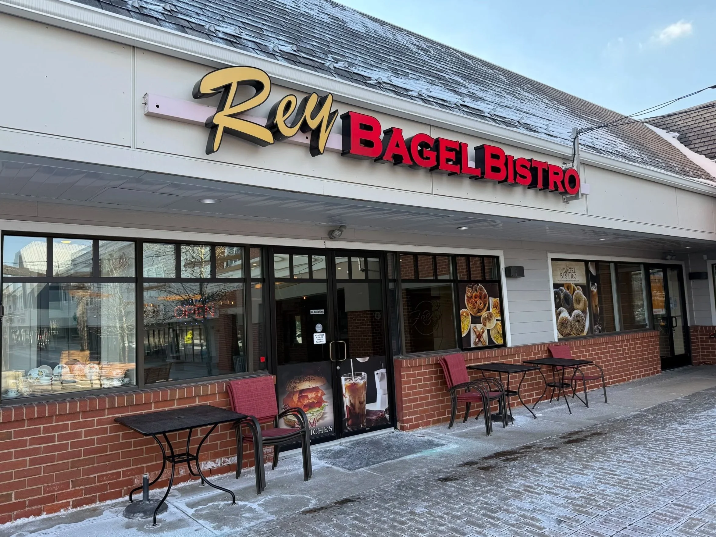 A bistro offering a unique blend of traditional bagels and bistro favorites with a sprinkle of Mexican flair. A local favorite with a TV located in the middle of the dining room.